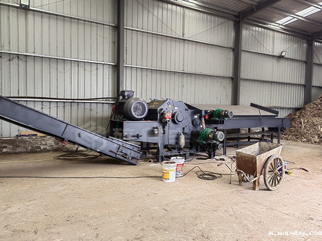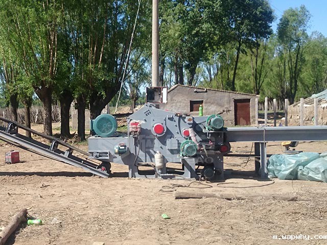 鼓式削片机由机体、刀辊、上下喂料辊、输送带、液压系统等部分组成。机体采用高强度钢板焊接而成,是整台机器的支承基础。刀辊上安装飞刀,用专业的飞刀螺栓,通过压力块,把飞刀固定在刀辊上。切削的主要原料是小径木、木材采伐、加工剩余物(如枝丫、枝条、板皮、板条、圆木芯、废单板等),也可用来切削非木质原料(如甘蔗、芦苇、毛竹等)。